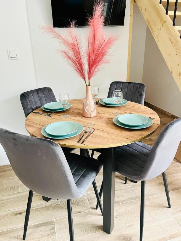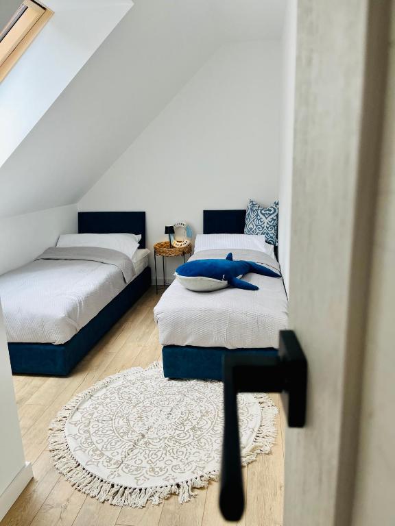 Dom z 2 sypialniami. Boasting a private entrance, this air-conditioned holiday home comes with 1 living room, 2 separate bedrooms and 1 bathroom with a shower and a hairdryer. Guests can make meals in the kitchen that features a refrigerator, a dishwasher and kitchenware. There is a washing machine, a tea and coffee maker and a terrace and complimentary winechampagne is available for guests. The unit has 4 beds. Dom wakacyjny - 6 osobowy. Powierzchnia pokoju ok.: 58 mkw.