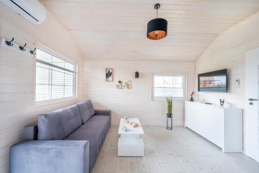 Dom z 2 sypialniami. This air-conditioned holiday home comprises 1 living room, 2 separate bedrooms and 1 bathroom with a shower. Guests will find a stovetop, a refrigerator, a dishwasher and a microwave in the kitchenette. The holiday home also provides guests with a barbecue. Featuring a terrace with garden views, this holiday home also provides a wardrobe and a flat-screen TV. The unit offers 4 beds. Dom wakacyjny - 6 osobowy. Powierzchnia pokoju ok.: 45 mkw.