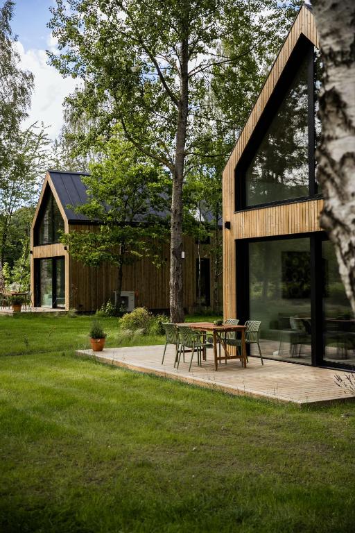Dom z 2 sypialniami. This holiday homes standout feature is the hot tub. Featuring a private entrance, this air-conditioned holiday home is comprised of 1 living room, 2 separate bedrooms and 1 bathroom with a shower and a hairdryer. Guests will find a stovetop, a refrigerator, a dishwasher and kitchenware in the kitchen. The holiday home also has a barbecue. Boasting a terrace with garden views, this holiday home also offers soundproof walls and a flat-screen TV with streaming services. The unit offers 3 beds. Dom wakacyjny - 4 osobowy. Powierzchnia pokoju ok.: 60 mkw. ;