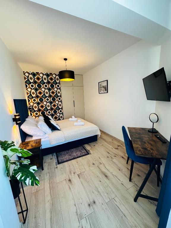 Oferta apartamentu obejmuje kilka sypialni (2), salon, aneks kuchenny z pełnym wyposażeniem, w tym lodówką i czajnikiem, a także łazienkę (1) z prysznicem oraz suszarką do włosów. W apartamencie zapewniono ręczniki i pościel.