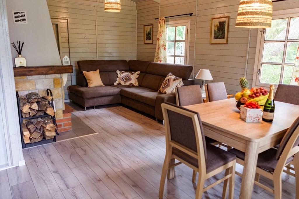 W salonie znajduje się kominek 🔥, który zapewnia przytulną atmosferę w chłodniejsze dni. Telewizor z płaskim ekranem 📺 oraz radio 🎵 gwarantują rozrywkę i relaks.