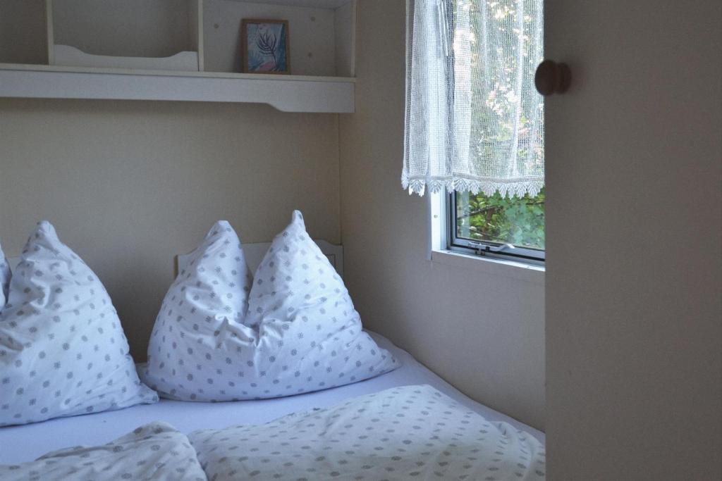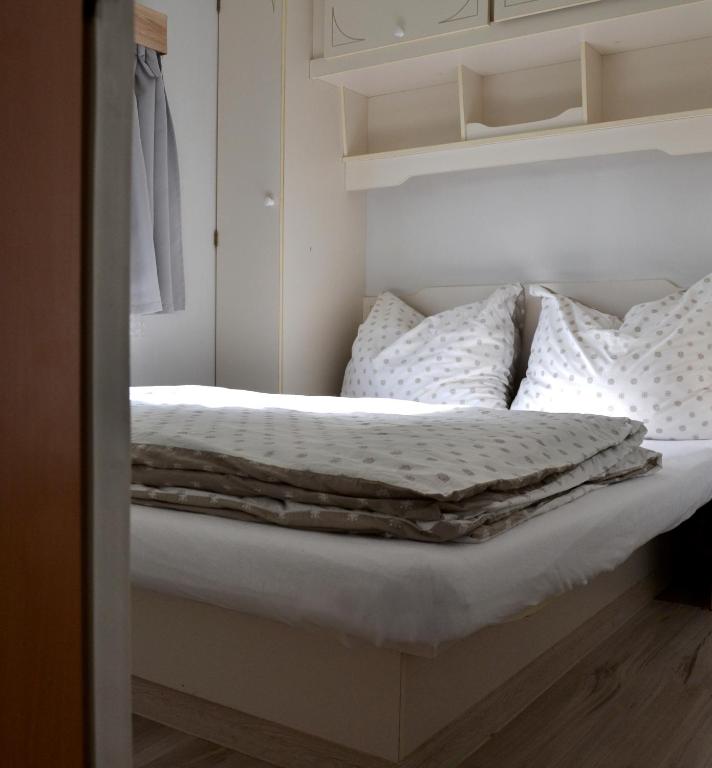 Domek holenderski. This mobile home consists of 1 living room, 2 separate bedrooms and 1 bathroom with a walk-in shower and a hairdryer. Guests will find a stovetop, a refrigerator and kitchenware in the kitchenette. The mobile home also offers a barbecue. Featuring a terrace with garden views, this mobile home also provides a tea and coffee maker and a flat-screen TV. The unit offers 2 beds. Domek holenderski - 4 osobowy. Powierzchnia pokoju ok.: 28 mkw.