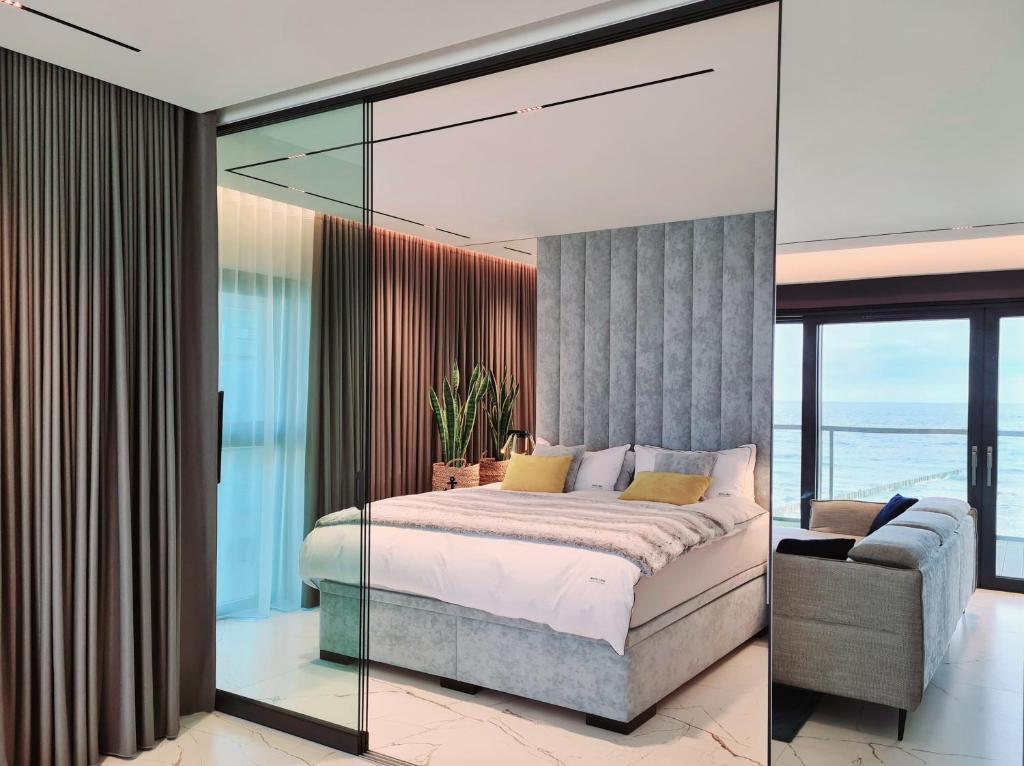 Apartament z widokiem na morze. Ten klimatyzowany apartament mieści salon, oddzielną sypialnię oraz łazienkę z wanną. W dobrze wyposażonej kuchni zapewniono płytę kuchenną, lodówkę, zmywarkę do naczyń oraz przybory kuchenne. Apartament dysponuje też tarasem z widokiem na morze i jest wyposażony w pralkę oraz telewizor z płaskim ekranem i dostępem do platform streamingowych. W opcji zakwaterowania znajdują się 2 łóżka. Apartament - 4 osobowy. Powierzchnia pokoju ok.: 45 mkw.