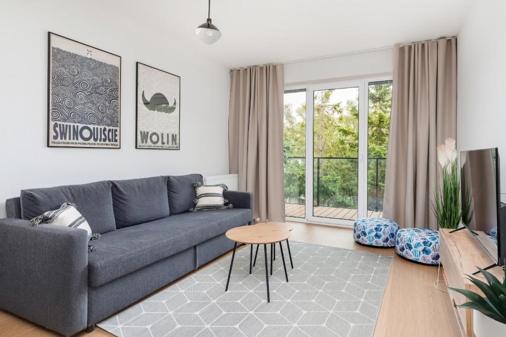 Apartament typu Deluxe. Featuring a private entrance, this apartment is comprised of 1 living room, 1 separate bedroom and 1 bathroom with a shower and a hairdryer. In the well-equipped kitchenette, guests will find a stovetop, a refrigerator, a dishwasher and kitchenware. This apartment features a tea and coffee maker, a seating area, a flat-screen TV and a balcony. The unit offers 2 beds. Apartament - 4 osobowy. Powierzchnia pokoju ok.: 43 mkw. ;