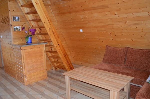 Domek z 1 sypialnią. Featuring a private entrance, this chalet is comprised of 1 living room, 1 separate bedroom and 1 bathroom with a walk-in shower. Guests will find a stovetop, a refrigerator, kitchenware and a microwave in the fully equipped kitchen. The chalet also has a barbecue. Boasting a terrace with garden views, this chalet also offers a tea and coffee maker and a flat-screen TV with satellite channels. The unit offers 5 beds. Domek - 6 osobowy. Powierzchnia pokoju ok.: 40 mkw.