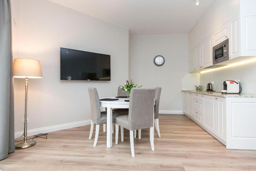 Apartament z 1 sypialnią. Apartament mieści salon, oddzielną sypialnię oraz łazienkę z kabiną prysznicową i suszarką do włosów. W aneksie kuchennym znajdują się przybory kuchenne, płyta kuchenna, lodówka i zmywarka do naczyń. Apartament dysponuje tarasem i jest wyposażony w pralkę, ekspres do kawy oraz telewizor z płaskim ekranem i dostępem do kanałów kablowych. W opcji zakwaterowania znajdują się 2 łóżka. Apartament - 4 osobowy. Powierzchnia pokoju ok.: 45 mkw.