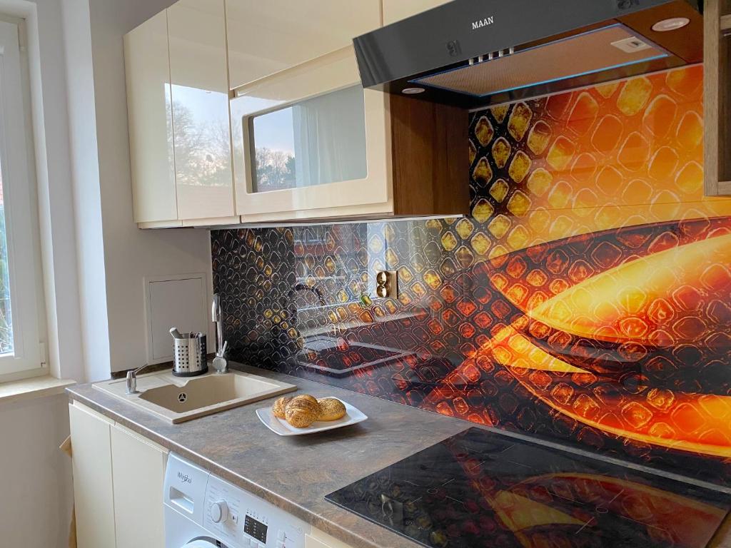 W apartamencie z 1 sypialnią zapewniono salon z telewizorem z płaskim ekranem, kuchnię z pełnym wyposażeniem oraz łazienkę (1).