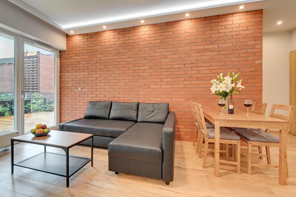Apartament typu Deluxe. Featuring a private entrance, this apartment comprises 1 living room, 1 separate bedroom and 1 bathroom with a walk-in shower and a hairdryer. Meals can be prepared in the kitchen, which comes with a stovetop, a refrigerator, a dishwasher and kitchenware. Boasting a terrace with garden views, this apartment also provides a washing machine and a flat-screen TV with streaming services. The unit offers 3 beds. Apartament - 5 osobowy. Powierzchnia pokoju ok.: 57 mkw.