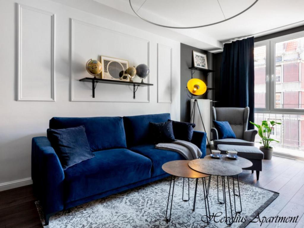 Apartament typu Hevelius z 2 sypialniami – ul. Kowalska 4. Ten apartament mieści 2 oddzielne sypialnie, salon oraz łazienkę z prysznicem typu walk-in i suszarką do włosów. Posiłki można przygotowywać w aneksie kuchennym z płytą kuchenną, zmywarką do naczyń, lodówką oraz przyborami kuchennymi. Apartament ten ma dźwiękoszczelne ściany. Zapewniono w nim również telewizor z płaskim ekranem i dostępem do kanałów kablowych, pralkę oraz zestaw do parzenia kawy i herbaty. Z okien roztacza się widok na miasto. W tej opcji zakwaterowania dostępne są 3 łóżka. Apartament - 6 osobowy. Powierzchnia pokoju ok.: 52 mkw. ;