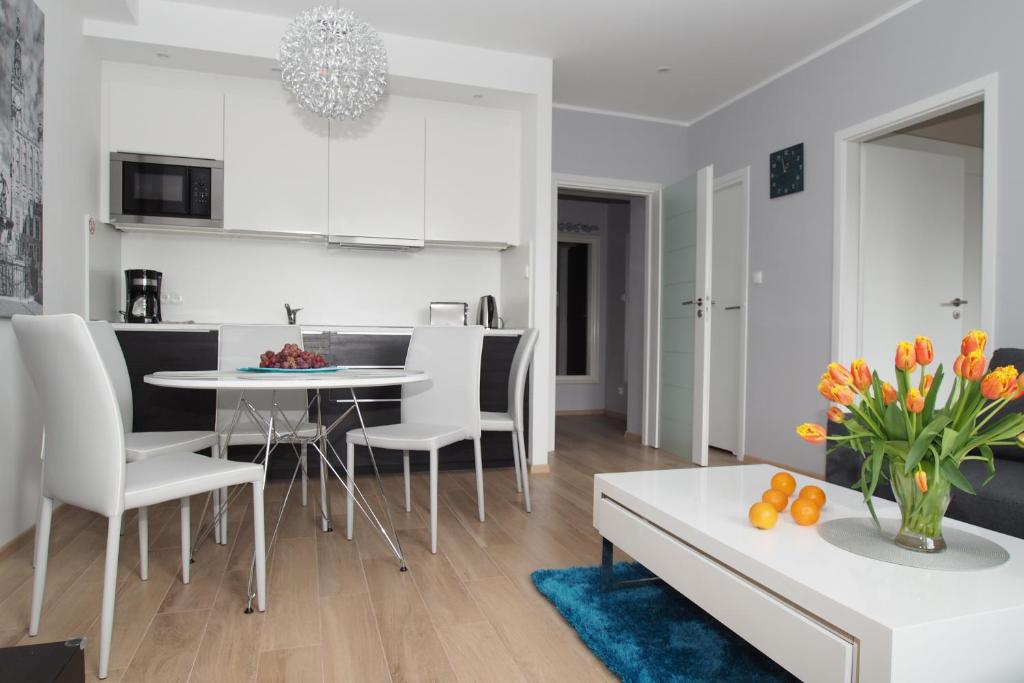 Apartament z 2 sypialniami. Guests can make meals in the kitchenette that is equipped with a stovetop, a refrigerator, a dishwasher and kitchenware. Featuring a balcony with city views, this apartment also provides a washing machine and a flat-screen TV with cable channels. The unit offers 3 beds. Apartament - 5 osobowy. Powierzchnia pokoju ok.: 55 mkw.