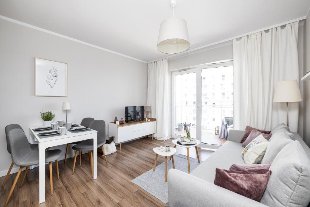 Apartament typu studio. Boasting a private entrance, this apartment also features 1 bedroom, a seating area and 1 bathroom with a walk-in shower and a hairdryer. In the well-equipped kitchen, guests will find a stovetop, a refrigerator, a dishwasher and kitchenware. The apartment features a washing machine, soundproof walls, a tea and coffee maker, a flat-screen TV, as well as sea views. The unit has 2 beds. Apartament - 3 osobowy. Powierzchnia pokoju ok.: 26 mkw.
