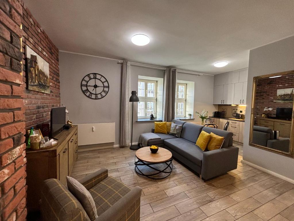 Oferta apartamentu obejmuje sypialnię (1), salon, kuchnię z pełnym wyposażeniem, w tym lodówką i ekspresem do kawy, a także łazienkę (1) z prysznicem oraz suszarką do włosów. W apartamencie zapewniono ręczniki i pościel.
