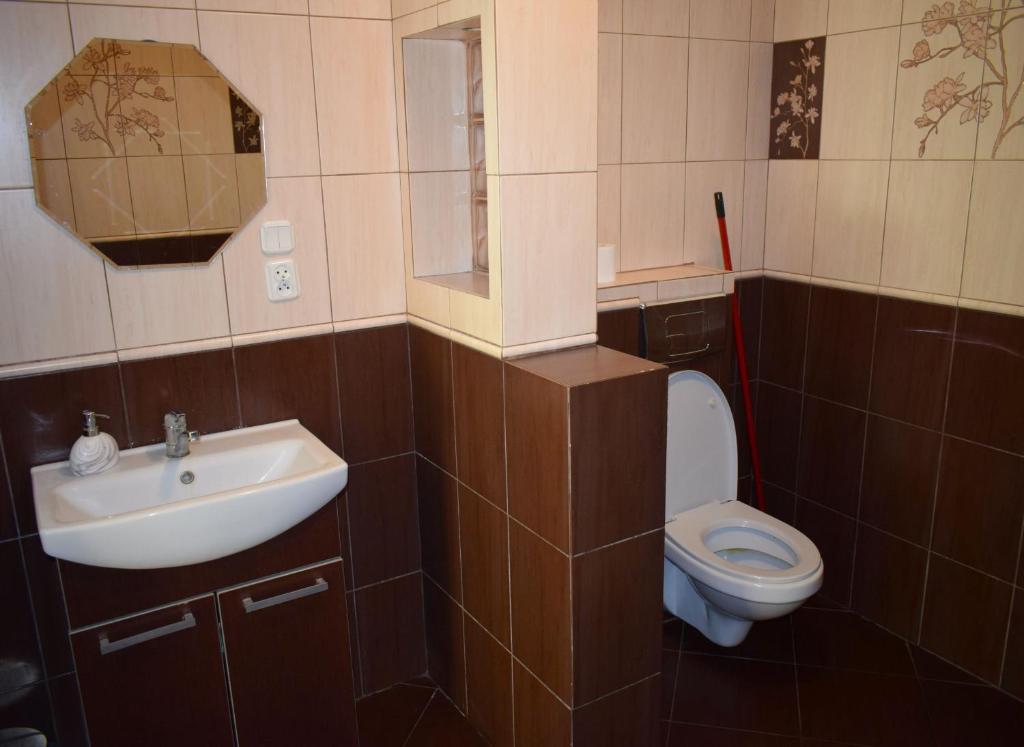 Domek z 2 sypialniami. Featuring a private entrance, this chalet consists of 2 living rooms, 2 separate bedrooms and 1 bathroom with a shower and a hairdryer. Guests will find a stovetop, a refrigerator, kitchenware and a microwave in the fully equipped kitchenette. The chalet also offers a barbecue. Boasting a terrace with garden views, this chalet also provides a wardrobe and a flat-screen TV with satellite channels. The unit offers 6 beds. Domek - 6 osobowy. Powierzchnia pokoju ok.: 55 mkw.