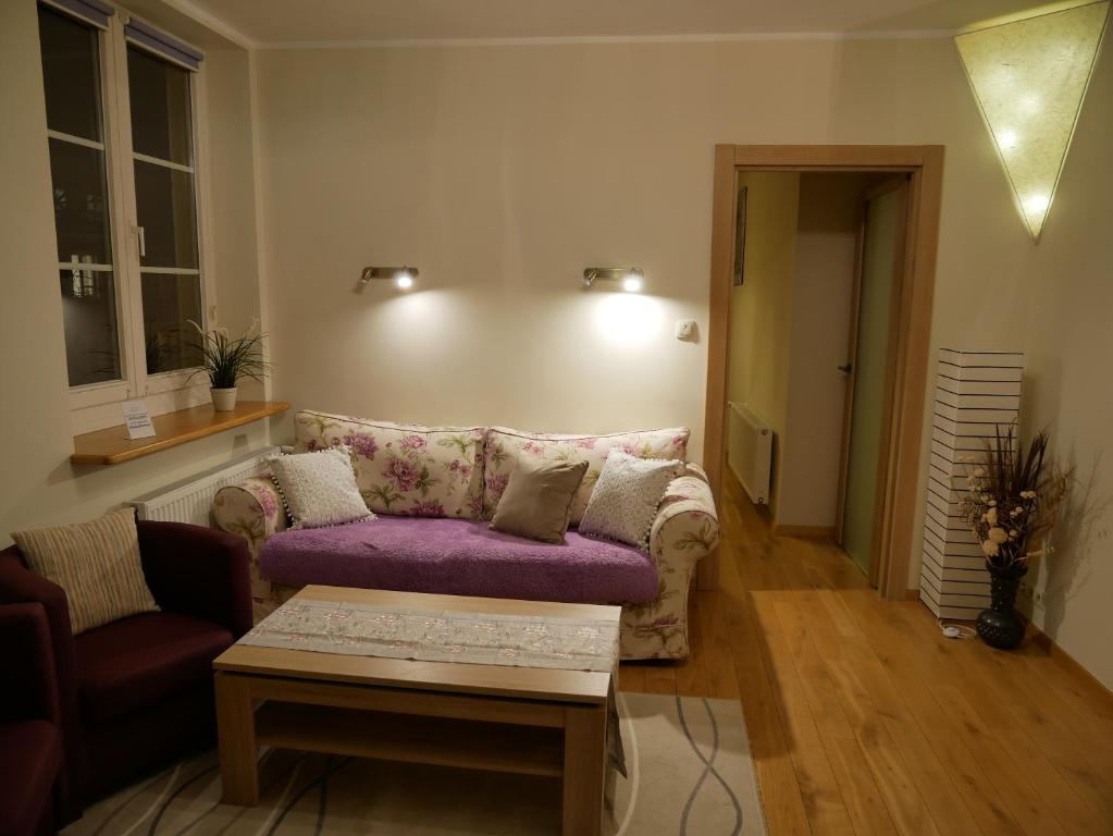 Apartament z 2 sypialniami. Featuring a private entrance, this apartment comprises 1 living room, 2 separate bedrooms and 1 bathroom with a bath and a shower. The well-fitted kitchen features a stovetop, a refrigerator, a dishwasher and kitchenware. The apartment provides a flat-screen TV, a washing machine, soundproof walls, a tea and coffee maker as well as garden views. The unit offers 3 beds. Apartament - 5 osobowy. Powierzchnia pokoju ok.: 60 mkw.