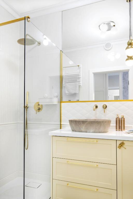 Apartament z prysznicem. Featuring a private entrance, this apartment also is comprised of 1 bedroom, a seating area and 1 bathroom with a shower and a hairdryer. Meals can be prepared in the kitchenette, which is fitted with a stovetop, a refrigerator and an oven. Boasting a balcony with city views, this apartment also offers a tea and coffee maker and a flat-screen TV with cable channels. The unit offers 1 bed. Apartament - 2 osobowy. Powierzchnia pokoju ok.: 25 mkw.