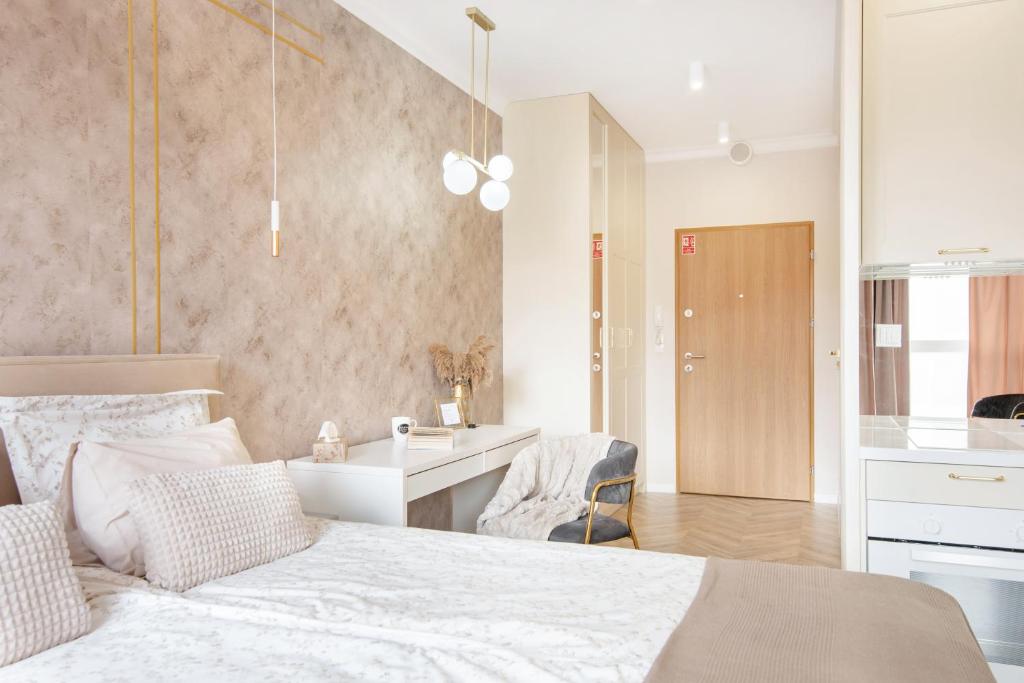 W apartamencie zapewniono sypialnię (1), łazienkę (1), pościel, ręczniki oraz aneks kuchenny z pełnym wyposażeniem. Do dyspozycji Gości jest także telewizor z płaskim ekranem z dostępem do kanałów satelitarnych oraz balkon z widokiem na miasto.