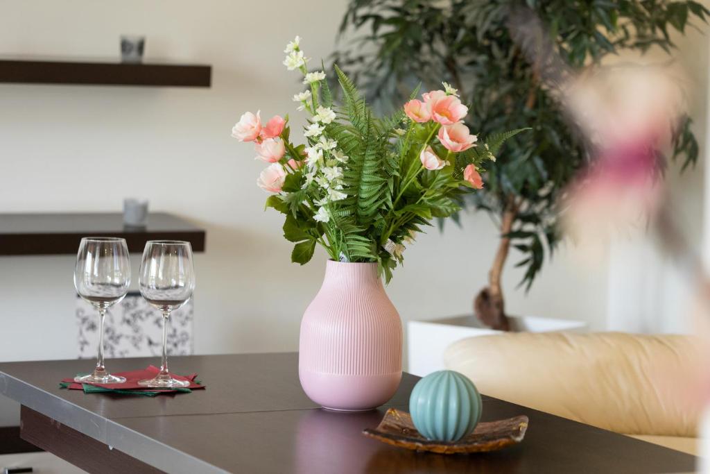 W apartamencie zapewniono taras, sypialnię (1), salon z telewizorem z płaskim ekranem, aneks kuchenny ze standardowym wyposażeniem, takim jak lodówka i zmywarka, a także łazienkę (1) z wanną. Goście mogą podziwiać widok na ogród. W apartamencie zapewniono ręczniki i pościel.
