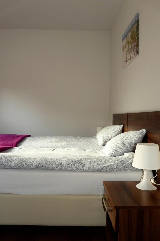 W sypialni 🛏️ czeka na gości wygodna pościel oraz szafa lub garderoba, gdzie można przechować odzież. W pokoju znajduje się także gniazdko koło łóżka oraz wieszak na ubrania, co zapewnia funkcjonalność i porządek.
