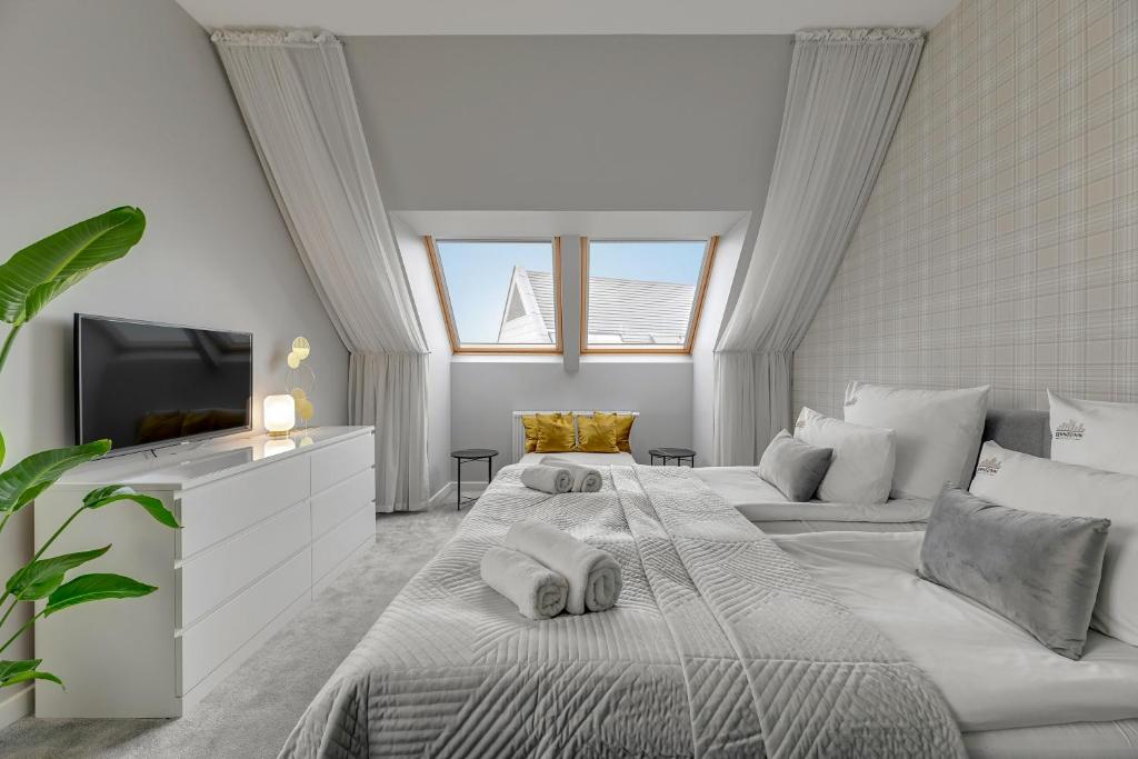 Apartament z 2 sypialniami. Featuring a private entrance, this apartment consists of 1 living room, 2 separate bedrooms and 1 bathroom with a walk-in shower and a hairdryer. In the kitchenette, guests will find a stovetop, a refrigerator, a dishwasher and kitchenware. Boasting a balcony with city views, this apartment also provides a tea and coffee maker and a flat-screen TV. The unit offers 2 beds. Powierzchnia pokoju ok.: 60 mkw. ;