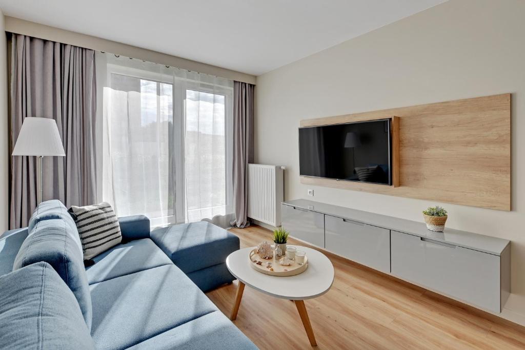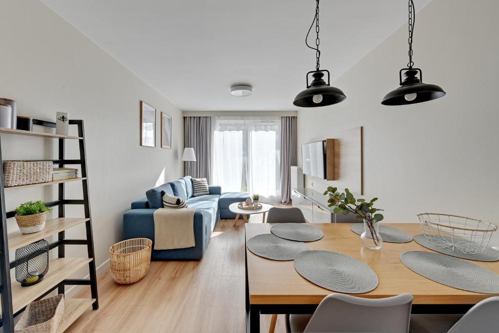 Apartament z 1 sypialnią. Featuring a private entrance, this apartment consists of 1 living room, 1 separate bedroom and 1 bathroom with a walk-in shower and a hairdryer. Guests can make meals in the kitchen that is equipped with a stovetop, a refrigerator, a dishwasher and kitchenware. Boasting a terrace with garden views, this apartment also provides a washing machine and a flat-screen TV. The unit offers 2 beds. Apartament - 4 osobowy. Powierzchnia pokoju ok.: 44 mkw.