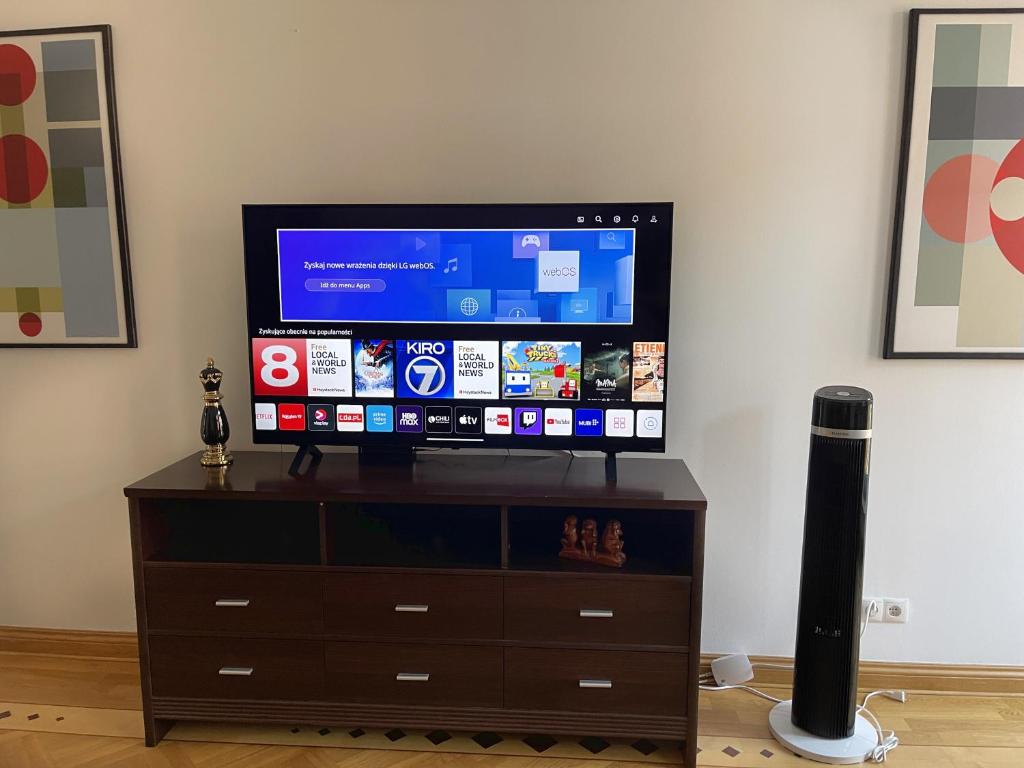 Apartament z 1 sypialnią. Boasting a private entrance, this apartment comes with 1 living room, 1 separate bedroom and 1 bathroom with a bath and a hairdryer. The well-equipped kitchen has a stovetop, a refrigerator, a dishwasher and kitchenware. The apartment features a flat-screen TV with streaming services, a washing machine, a tea and coffee maker, a seating area as well as city views. The unit has 2 beds. Apartament - 4 osobowy. Powierzchnia pokoju ok.: 52 mkw.