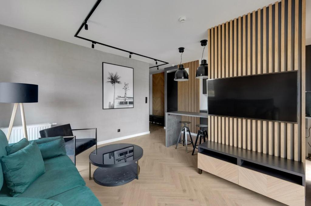 Apartament z 1 sypialnią. This apartment features a sauna. Boasting a private entrance, this air-conditioned apartment features 1 living room, 1 separate bedroom and 1 bathroom with a walk-in shower and a hairdryer. Guests can make meals in the kitchen that has a stovetop, a refrigerator, a dishwasher and kitchenware. Featuring a terrace with garden views, this apartment also features a washing machine and a flat-screen TV with streaming services. The unit has 2 beds. Apartament - 4 osobowy. Powierzchnia pokoju ok.: 40 mkw. ;