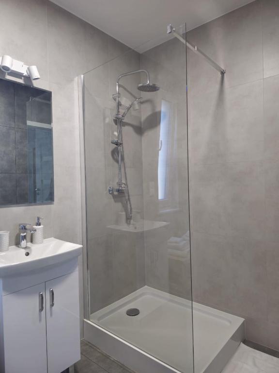 Apartament. Featuring a private entrance, this apartment is comprised of 1 living room, 2 separate bedrooms and 1 bathroom with a shower and a hairdryer. Guests can make meals in the kitchenette that is fitted with a stovetop, a refrigerator, a dishwasher and kitchenware. Boasting a terrace with garden views, this apartment also offers a tea and coffee maker and a flat-screen TV with streaming services. The unit offers 4 beds. Powierzchnia pokoju ok.: 55 mkw.