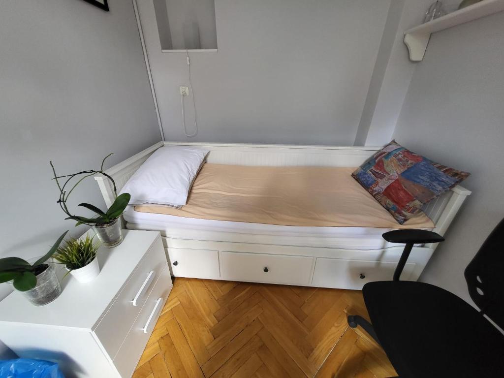 Pokój jednoosobowy ze wspólną łazienką. The single room features a washing machine, a tea and coffee maker, as well as a shared bathroom boasting a bath and a shower. In the well-fitted kitchen, guests will find a stovetop, a refrigerator, kitchenware and an oven. The single room has parquet floors and provides a dining area, a wardrobe and ancourtyard view. The unit has 1 bed. Pokój Jednoosobowy - 1 osobowy. Powierzchnia pokoju ok.: 8 mkw.