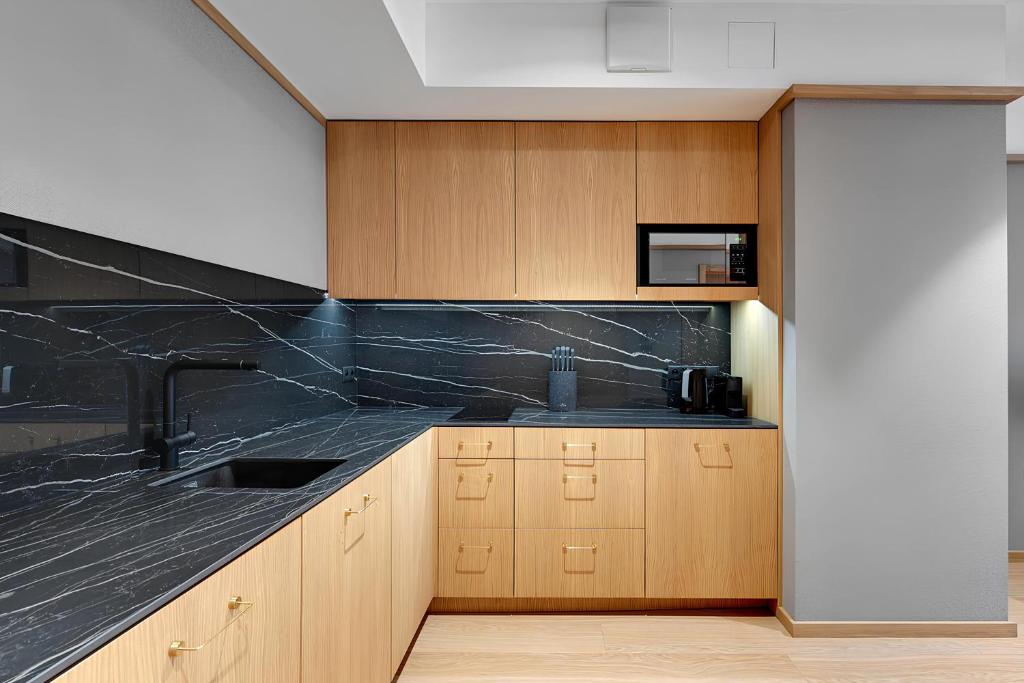 Apartament typu Suite z 1 sypialnią. This spacious suite includes 1 living room, 1 separate bedroom and 1 bathroom with a walk-in shower and free toiletries. Guests can make meals in the kitchenette that is fitted with a stovetop, a refrigerator, a dishwasher and kitchenware. There is air conditioning, a private entrance and a balcony and complimentary winechampagne is offered for guests. The unit has 2 beds. Powierzchnia pokoju ok.: 58 mkw. ;