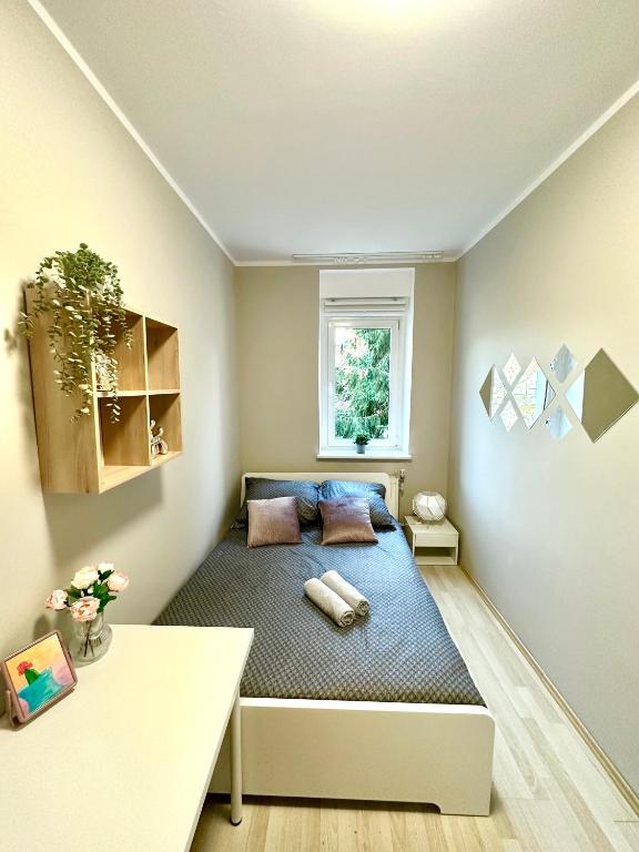 Pokój Dwuosobowy typu Budget. The double room offers a washing machine, a tea and coffee maker, as well as a shared bathroom featuring a shower and a hairdryer. The double room features a wardrobe and heating. The unit offers 1 bed. Pokój Dwuosobowy - 2 osobowy. Powierzchnia pokoju ok.: 7 mkw.