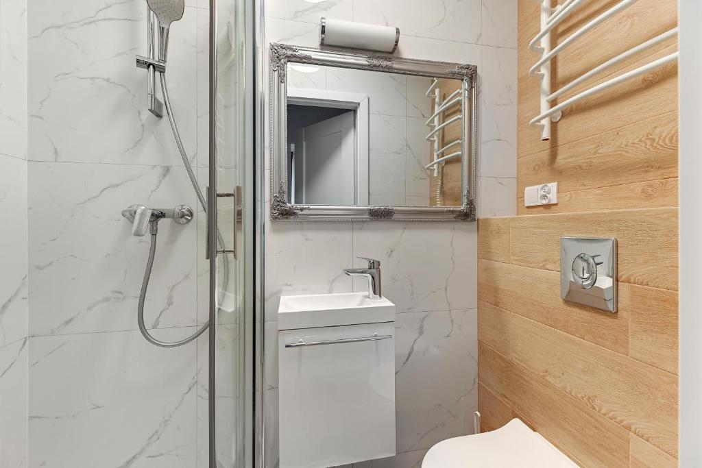 Apartament z 1 sypialnią. The apartment features 1 bedroom and 1 bathroom with a shower. This apartment has a tea and coffee maker, heating, a TV with satellite channels and ancourtyard view. The unit offers 1 bed. Apartament - 2 osobowy. Powierzchnia pokoju ok.: 15 mkw.