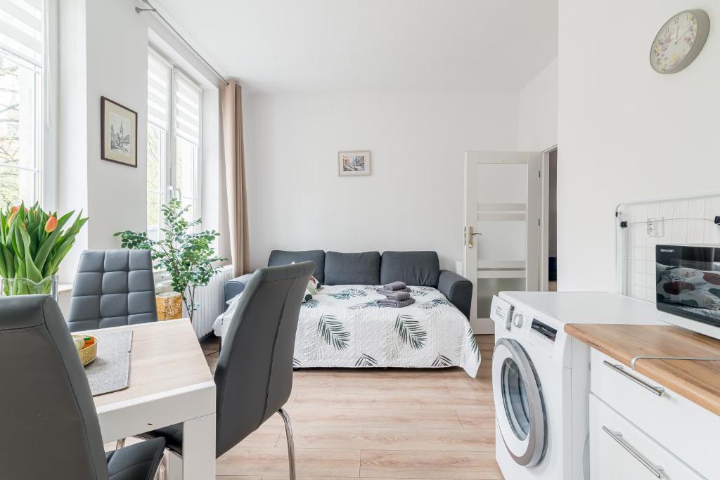 Duży pokój dwuosobowy. The double room provides heating, as well as a shared bathroom boasting a hairdryer. In the kitchenette, guests will find a stovetop, kitchenware, an oven and a microwave. The double room offers a washing machine, an electric kettle, parquet floors, a flat-screen TV, as well as a quiet street view. The unit has 1 bed. Powierzchnia pokoju ok.: 18 mkw.