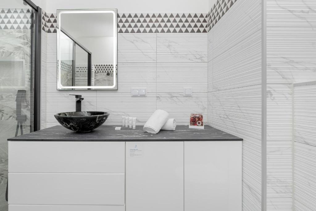 Oferta apartamentu obejmuje sypialnię (1), salon, aneks kuchenny z pełnym wyposażeniem, w tym lodówką i ekspresem do kawy, a także łazienkę (1) z prysznicem oraz bezpłatnym zestawem kosmetyków. W apartamencie zapewniono ręczniki i pościel.