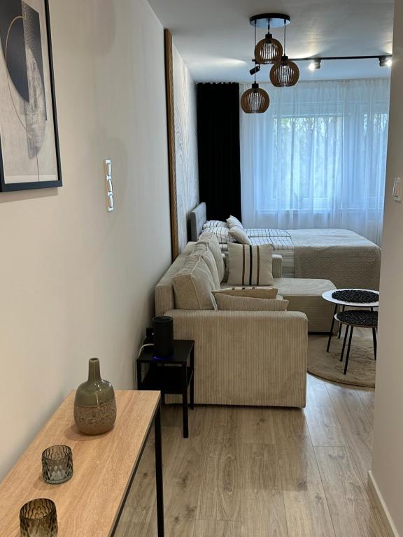 Apartament z 1 sypialnią. The apartments kitchenette is available for cooking and storing food. The apartment features a washing machine, a sofa, heating, as well as a flat-screen TV with cable channels. The unit has 2 beds. Apartament - 3 osobowy. Powierzchnia pokoju ok.: 30 mkw.