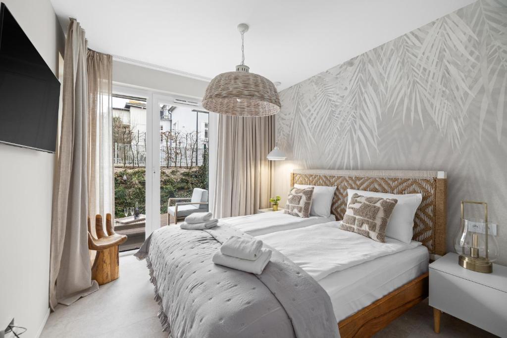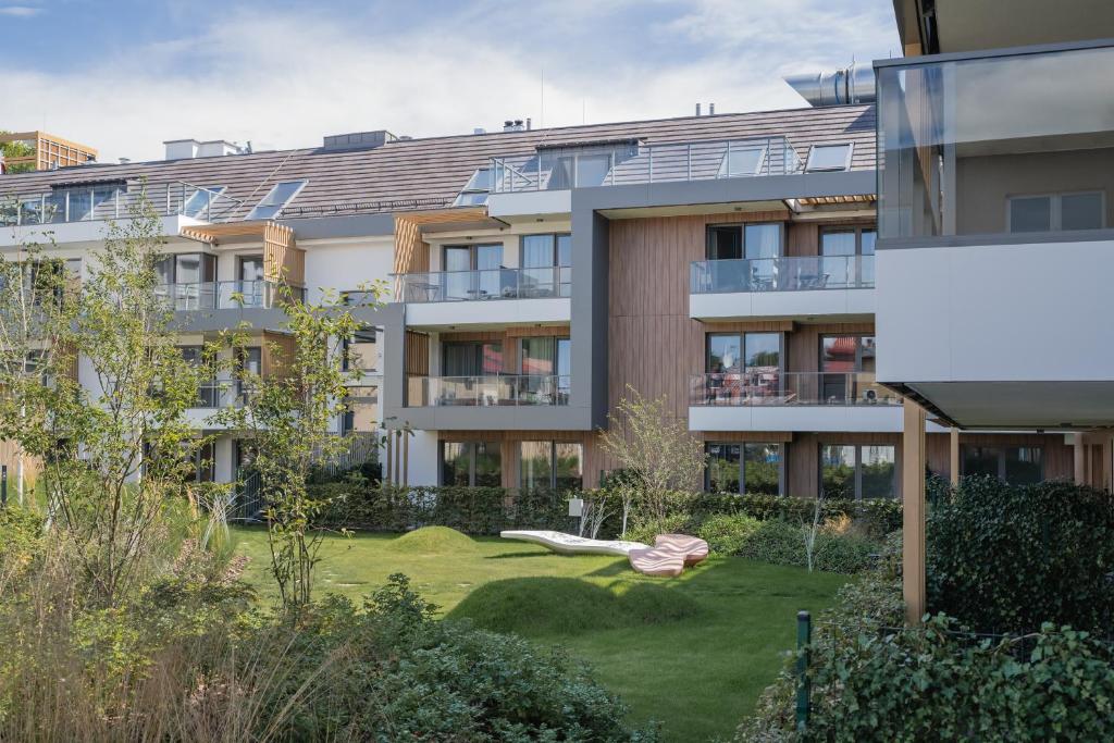Apartament typu Classic. Ten apartament z oddzielnym wejściem mieści salon, oddzielną sypialnię oraz łazienkę z prysznicem i suszarką do włosów. W dobrze wyposażonym aneksie kuchennym przygotowano płytę kuchenną, lodówkę, zmywarkę do naczyń i przybory kuchenne. Apartament dysponuje tarasem, pralką, zestawem do parzenia kawy i herbaty oraz telewizorem z płaskim ekranem i dostępem do kanałów satelitarnych. W tej opcji zakwaterowania dostępne są 2 łóżka. Apartament - 4 osobowy. Powierzchnia pokoju ok.: 40 mkw. ;