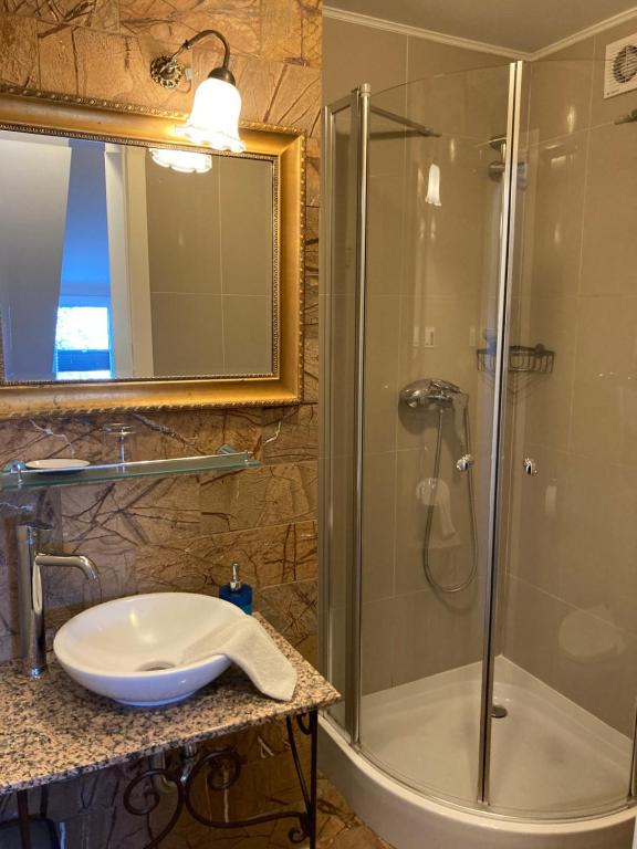 Pokój Dwuosobowy typu Deluxe. The double room provides a sofa, parquet floors, as well as a private bathroom boasting a shower and a hairdryer. The double room features air conditioning, soundproof walls, a tea and coffee maker, a wardrobe and a flat-screen TV with satellite channels. The unit has 2 beds. Pokój Dwuosobowy - 2 osobowy. Powierzchnia pokoju ok.: 20 mkw. ;
