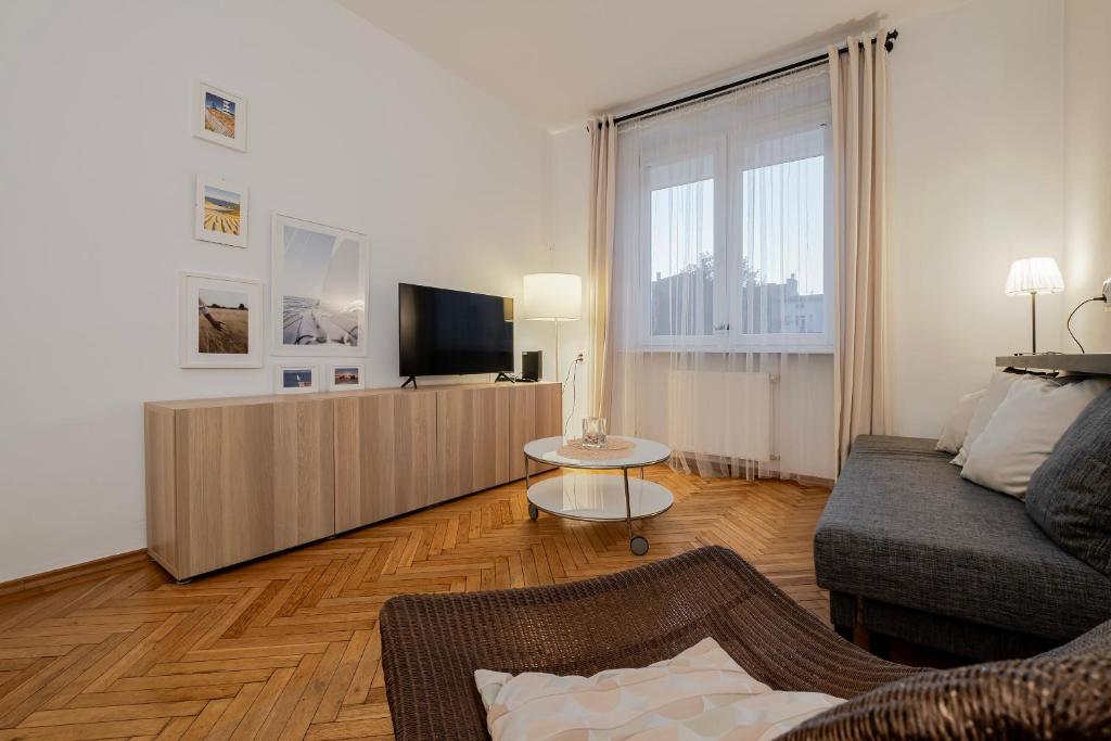 Apartament z 1 sypialnią. Guests can make meals in the kitchen that is equipped with a stovetop, a refrigerator, a dishwasher and kitchenware. Featuring a balcony with city views, this apartment also provides a dining area and a flat-screen TV with cable channels. The unit offers 2 beds. Apartament - 4 osobowy. Powierzchnia pokoju ok.: 45 mkw.