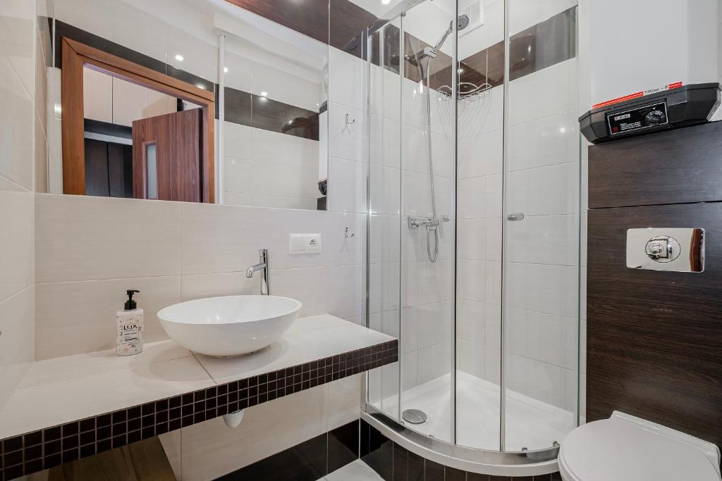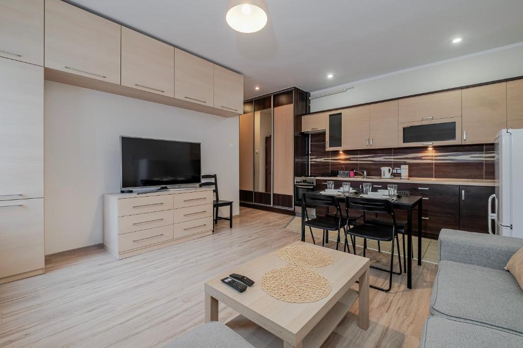 Apartament z 1 sypialnią. The well-fitted kitchenette has a stovetop, a refrigerator, kitchenware and an oven. The apartment features a flat-screen TV, a seating area, a dining area, a wardrobe as well as city views. The unit has 2 beds. Apartament - 4 osobowy. Powierzchnia pokoju ok.: 39 mkw.