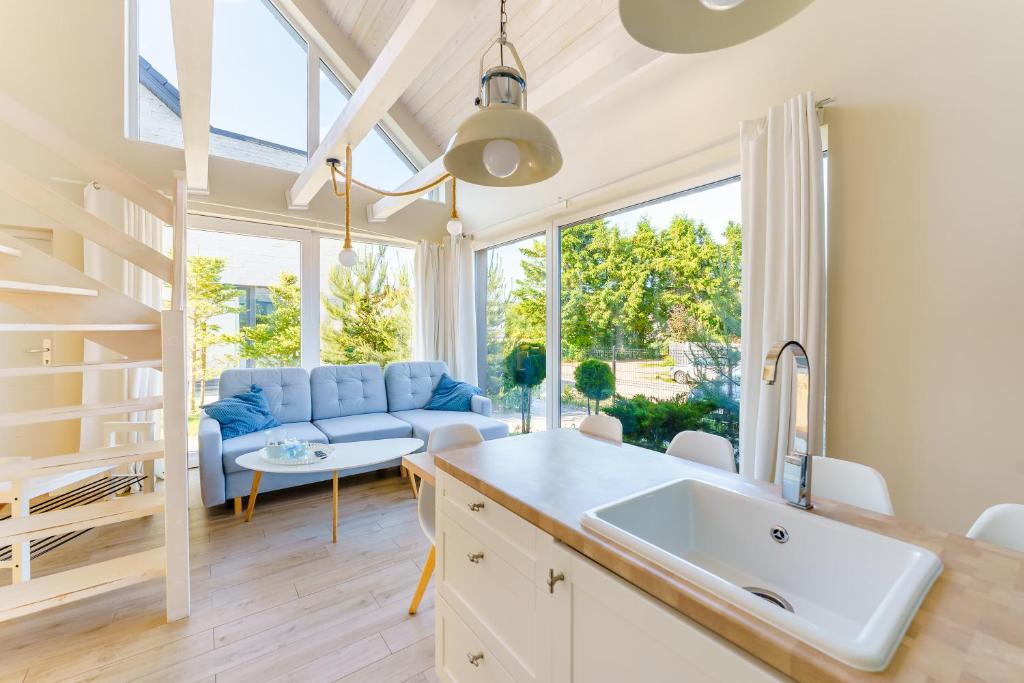 Domek typu Superior. This chalet offers a sauna. Featuring a private entrance, this air-conditioned chalet comprises 1 living room, 2 separate bedrooms and 1 bathroom with a shower and a hairdryer. Guests will find a stovetop, a refrigerator, a dishwasher and kitchenware in the fully equipped kitchenette. The chalet also provides guests with a barbecue. The spacious chalet provides a washing machine, a coffee machine, a seating area, a flat-screen TV with cable channels, as well as garden views. The unit offers 4 beds. Domek - 6 osobowy. Powierzchnia pokoju ok.: 72 mkw.