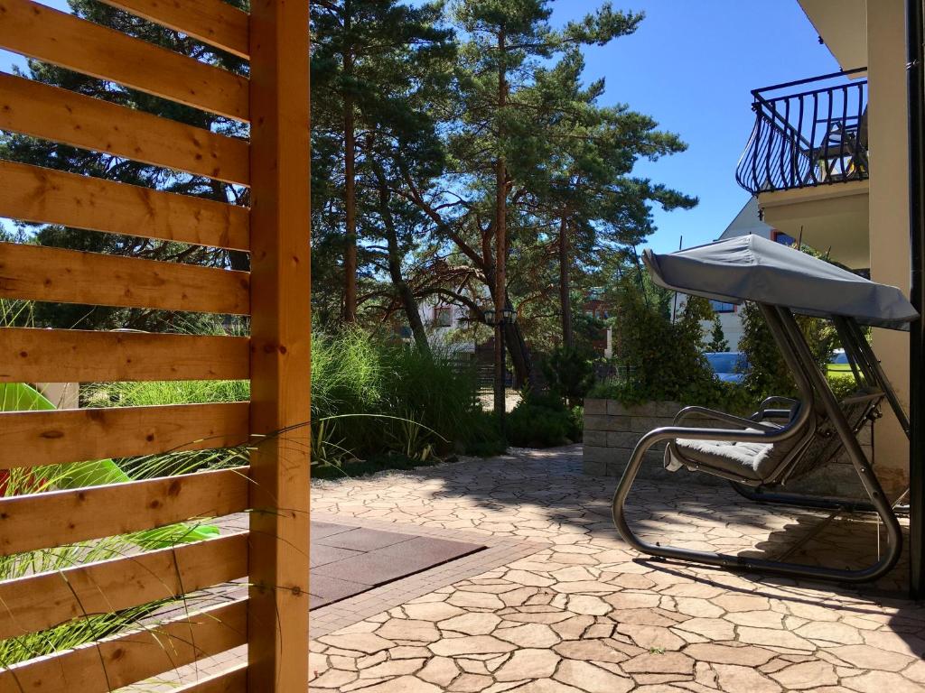 Apartament z tarasem. This apartment consists of 1 living room, 1 separate bedroom and 1 bathroom with a walk-in shower and free toiletries. In the well-equipped kitchen, guests will find a stovetop, a refrigerator, a dishwasher and kitchenware. The air-conditioned apartment provides a flat-screen TV, a washing machine, a tea and coffee maker, a dining area as well as garden views. The unit offers 3 beds. Powierzchnia pokoju ok.: 45 mkw. ;