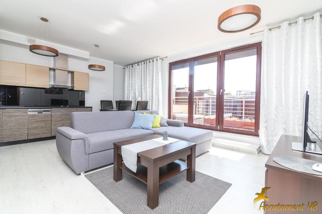 Apartament. Featuring a private entrance, this apartment comprises 1 living room, 1 separate bedroom and 1 bathroom with a bath and a shower. Meals can be prepared in the well-fitted kitchen, which comes with a stovetop, a refrigerator, a dishwasher and kitchenware. Boasting a terrace with garden views, this apartment also provides a washing machine and a flat-screen TV with streaming services. The unit offers 3 beds. Apartament - 7 osobowy. Powierzchnia pokoju ok.: 50 mkw.