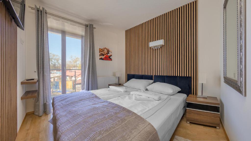 Apartament z 1 sypialnią. This apartment features 1 living room, 1 separate bedroom and 1 bathroom with a shower. Guests can make meals in the kitchenette that has a stovetop, a refrigerator, a dishwasher and kitchenware. Boasting a balcony, this apartment also features a washing machine, a coffee machine and a flat-screen TV. The unit has 2 beds. Apartament - 4 osobowy. Powierzchnia pokoju ok.: 37 mkw.