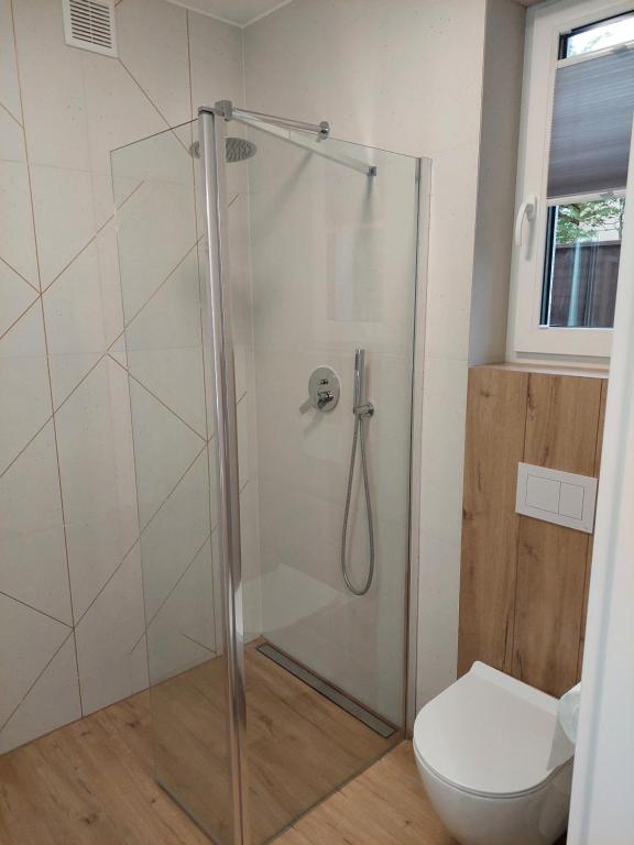 Dom wakacyjny. Featuring a private entrance, this holiday home is comprised of 1 living room, 2 separate bedrooms and 1 bathroom with a walk-in shower and a hairdryer. Guests will find a stovetop, a refrigerator, kitchenware and a microwave in the kitchen. The holiday home also has a barbecue. Boasting a terrace with garden views, this holiday home also offers a tea and coffee maker and a flat-screen TV. The unit offers 4 beds. Powierzchnia pokoju ok.: 50 mkw. ;