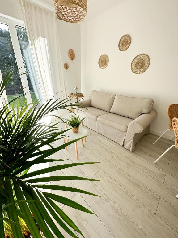 Apartament z 1 sypialnią. This apartment consists of 1 living room, 1 separate bedroom and 1 bathroom with a shower and a hairdryer. In the fully equipped kitchen, guests will find a stovetop, a refrigerator, a dishwasher and kitchenware. The apartment provides a flat-screen TV, a washing machine, a tea and coffee maker, a seating area as well as garden views. The unit offers 2 beds. Apartament - 4 osobowy. Powierzchnia pokoju ok.: 40 mkw.