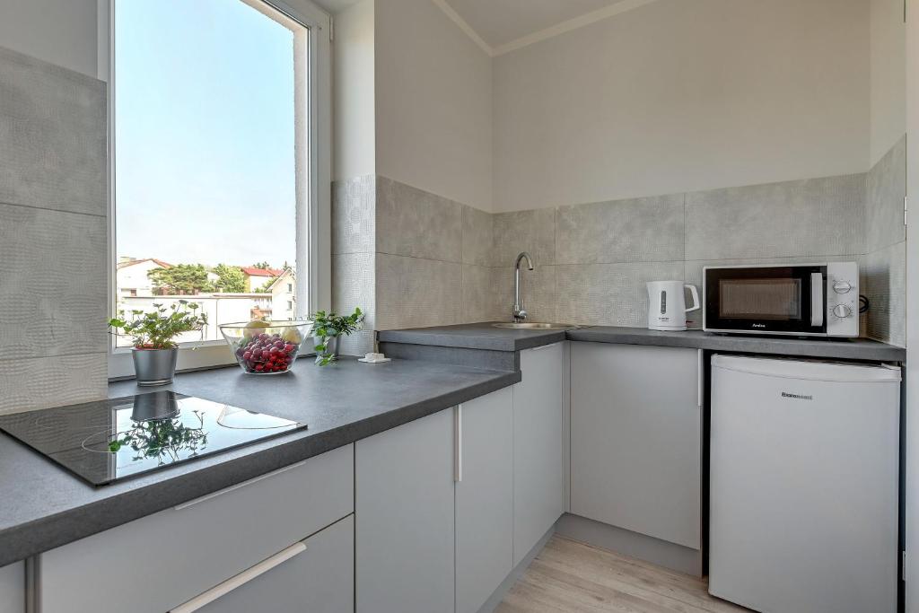 Rodzinny apartament typu Studio. Featuring free toiletries, this family room includes a private bathroom with a shower and a hairdryer. The well-fitted kitchenette has a stovetop, a refrigerator, a dishwasher and kitchenware. The family room features a flat-screen TV, a tea and coffee maker, a dining area, a wardrobe as well as a quiet street view. The unit has 3 beds. Rodzinny - 5 osobowy. Powierzchnia pokoju ok.: 30 mkw. ;