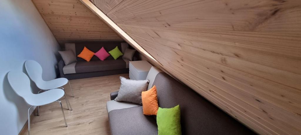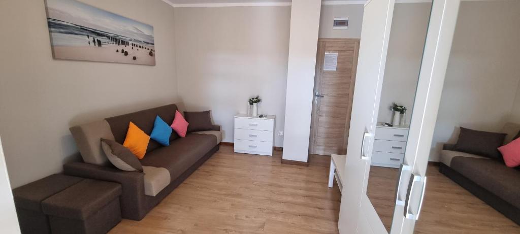 Apartament dwupoziomowy. This air-conditioned apartment comprises 1 living room, 2 separate bedrooms and 1 bathroom with a shower. Guests can make meals in the kitchenette that comes with a stovetop, a refrigerator, kitchenware and a microwave. The apartment features parquet floors, a seating area with a flat-screen TV, a dining area, a wardrobe, as well as an electric kettle. The unit offers 4 beds. Apartament - 4 osobowy. Powierzchnia pokoju ok.: 39 mkw. ;