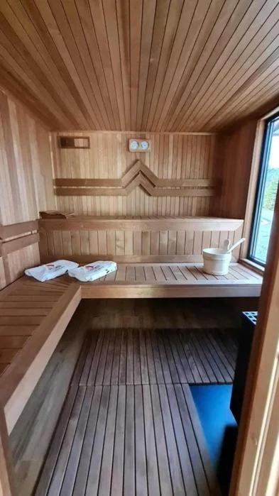 Dom z 1 sypialnią. This holiday homes special feature is the hot tub. Featuring a private entrance, this air-conditioned holiday home comprises 1 living room, 1 separate bedroom and 1 bathroom with a bath or a shower. The holiday homes kitchen, which features kitchenware, is available for cooking and storing food. Boasting a terrace with garden views, this holiday home also provides a seating area and a flat-screen TV. The unit offers 3 beds. Dom wakacyjny - 6 osobowy. Powierzchnia pokoju ok.: 35 mkw.