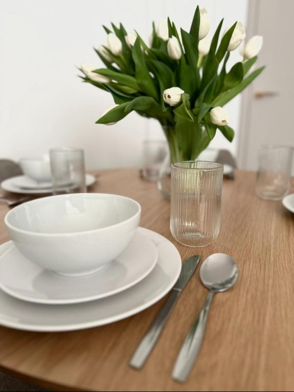 Apartament Premium z 1 sypialnią. Featuring a private entrance, this apartment is comprised of 1 living room, 1 separate bedroom and 1 bathroom with a shower and a hairdryer. The well-equipped kitchen features a stovetop, a refrigerator, a dishwasher and kitchenware. This apartment includes a dining area, a flat-screen TV with streaming services a tea and coffee maker and a terrace. The unit offers 3 beds. Apartament - 5 osobowy. Powierzchnia pokoju ok.: 44 mkw.