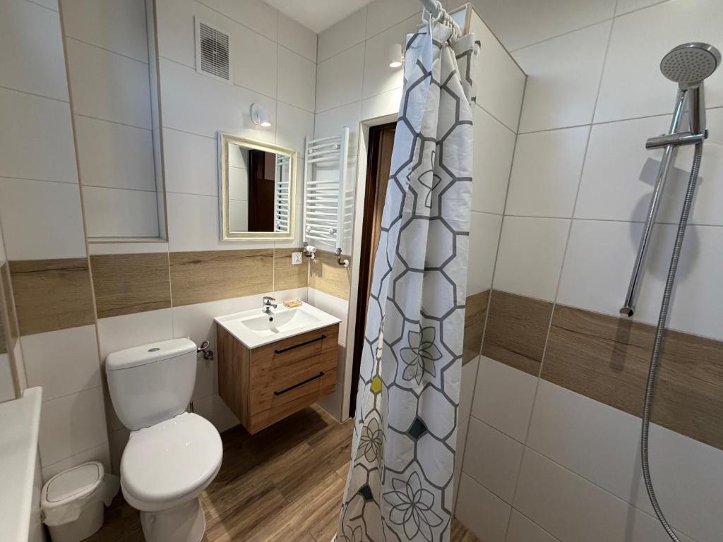 Pokój Czteroosobowy z balkonem. Guests can make meals in the kitchenette that features a refrigerator, kitchenware and a microwave. The quadruple room features a tea and coffee maker, a carpeted floor, a balcony with garden views as well as a private bathroom boasting a walk-in shower. The unit has 3 beds. Powierzchnia pokoju ok.: 30 mkw. ;