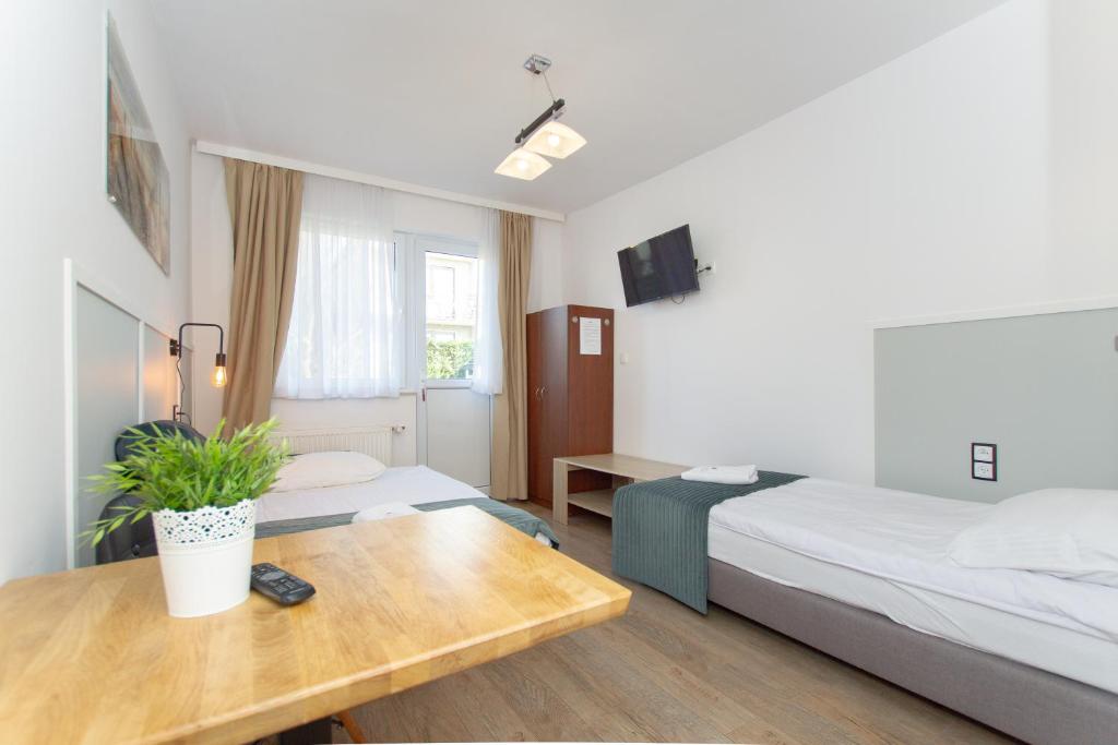 Pokój trzyosobowy. This air-conditioned triple room has a private bathroom, a wardrobe, an electric kettle as well as a balcony. The unit has 2 beds. Powierzchnia pokoju ok.: 20 mkw.